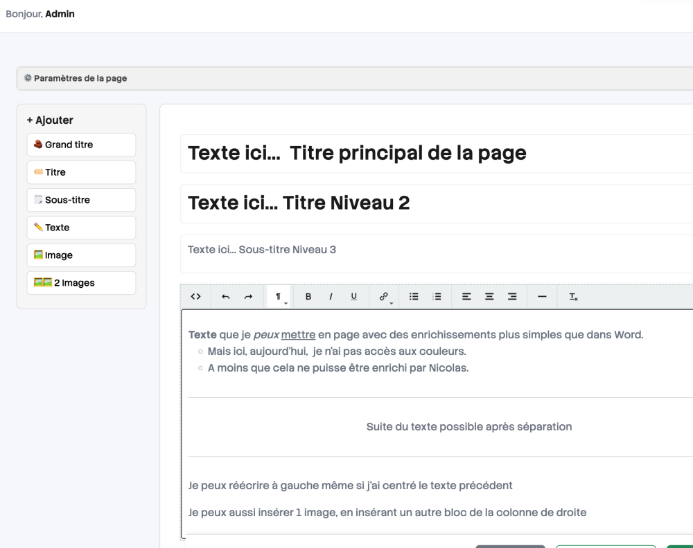 Je peux aussi insérer 1 ou 2 images, en insérant un autre bloc à partir de la colonne de gauche,